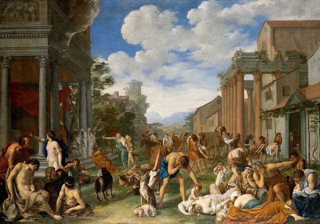 后来由米希尔·史维特斯所绘的「雅典鼠疫」,生动再现了古希腊史学家修昔底德所描述的那场灾难的景象。