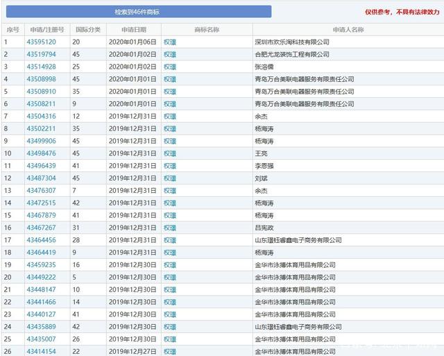 从日期上来看,绝大部分的新申请都是在电视剧开播之后进行的,看来“权璟”的大名也是大火,这也可以看出大众对电视剧名字的青睐。