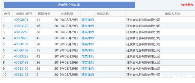 我们知道,《精英律师》的出品方是新丽电视文化投资有限公司和浙江贤君影视文化有限公司。难道是出品方忘了注册,被抢注了?
