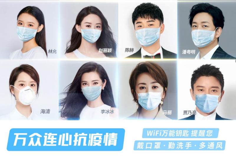 为更好地引导人们做好科学防护,WiFi万能钥匙积极响应社会号召,携手诸多文娱明星发起了“万众连心 共战疫情”为主题的公益宣传活动。备受大家喜爱的赵丽颖、陈赫、李冰冰、潘粤明、海清、林允、马丽、贾乃亮等明星作为战“疫”宣传大使,公益助力抗疫防控宣传。