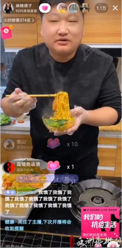 如果说健身主播们组成了这场抖音直播生活秀的家庭健身房,那么在美食区,麻辣德子、贫穷料理、刘铁雕Rose等美食主播的热情直播,则是多场家庭美食聚会。同一时段开播的贫穷料理与刘铁雕,都邀请到观众参加他们举办的线上美食派对,带领大家现场详细感受美食,畅聊饮食文化。作为粉丝心目中的"大厨",麻辣德子则带来了独家美食教学,不仅分享了街边小吃煎饼果子的制作方法,也现场传授独家的豪华泡面烹饪技巧。