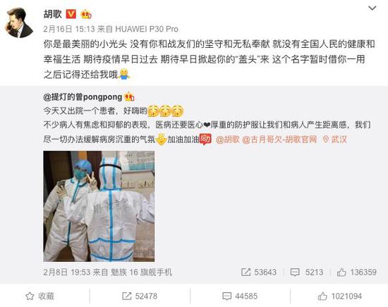 疫情期间,微博上像王力宏、胡歌这样的明星宠粉故事还有很多很多,#张天爱[微博]为粉丝医院捐护目镜#,#朱一龙[微博]给女医生留言#诸多话题均成了微博热搜。
