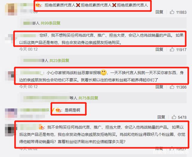 这不,在官博下面,一大批网友们疯狂刷屏,甚至直接喊话“拒觉低素质代言人”、“不会购买肖战的一切周边产品”等等,看来肖战的确是遭到了爆红之后的第一场网络暴力!如果处理不当的话,肖战的事业危机也会如期而来!