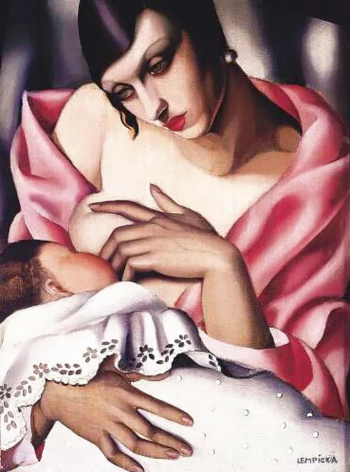 这幅《母爱》便是蓝碧嘉母女的化身。蓝碧嘉留着时髦的波波头,殷切注视着襁褓中的女儿,温柔似水