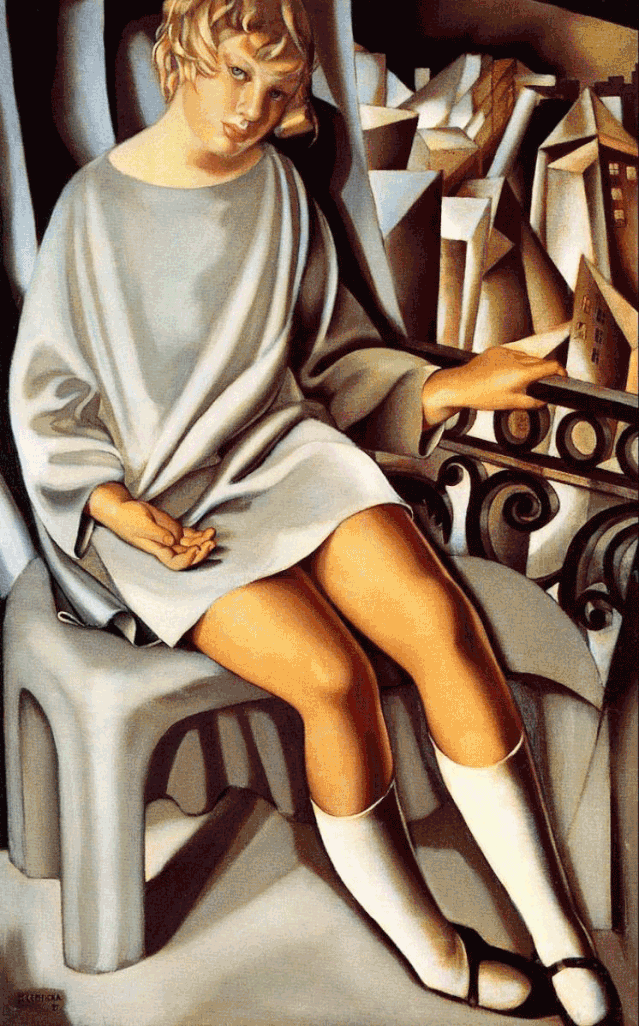 《戴手套的年轻女孩》/1930年/女孩的身体像是无数个几何图形拼凑出来的一般,这正是当时的流行画风Art Deco的特点