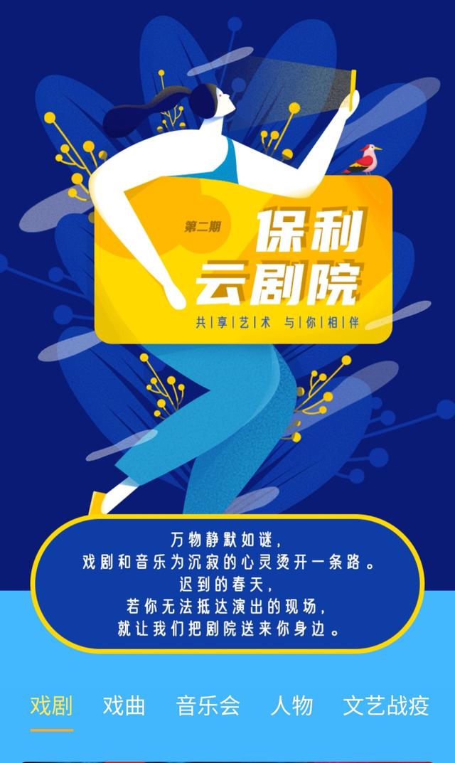 提供这些演出版权的央华文化、九维文化等文化公司,都是民营演出单位,疫情导致的停演对他们造成了极大的冲击和压力,但他们却积极支持和配合保利剧院这样的公益行为,将热门商演的内容提供给大家免费观看,也表达了他们的一种支持抗疫、众志成城的心情。央华文化总制作人王可然表示:“这个特殊的时期,让大家能够在家中也看到好的演出,我们希望能够起到一定作用,这也是戏剧的荣光吧!所以我们选择的也是比较具有经典价值的剧目,体现了我们的一种态度。这些剧目大部分日后还会继续在剧场演出,但我觉得现在的线上放映应该不会对以后的现场演出形成冲突,因为戏剧的魅力还是在现场。”
