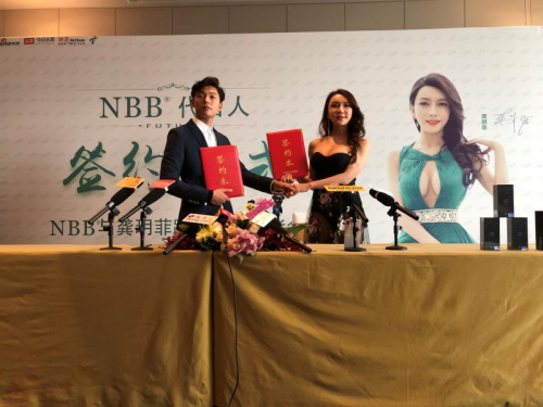 此次活动得到了有关领导和国内外健康界嘉宾的大力支持,签约仪式由知名主持人主持。活动中,主办方领导桂林市鄂东贸易有限公司执行董事,NBB总公司集团董事长唐勇刚宣布,香港演员许绍雄和性感女神龚玥菲担任NBB代言人。