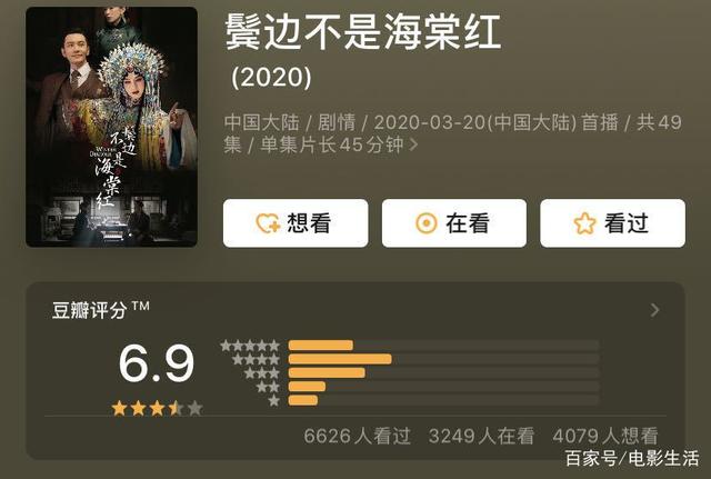 目前《鬓边不是海棠红》的豆瓣评分已经出炉,虽然6.9分在国产剧当中已经属于很高的了,但是有不少网友表示,《鬓边不是海棠红》开局评分最起码应该在7分以上。