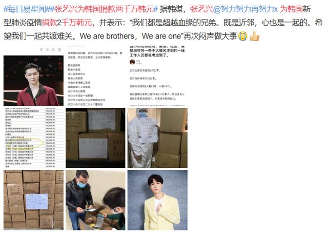 前段时间微博上出现了一条关于张艺兴的热搜:"张艺兴为韩国捐款两千万韩元"。