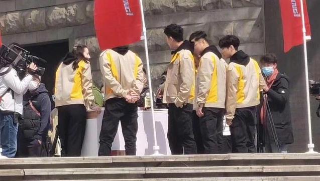 看这个侧影,大家有没有很熟悉鸭!对,女生的话就是迪丽热巴了,然后戴眼镜的就是王迅了,王迅旁边就是小绵羊张艺兴的了~