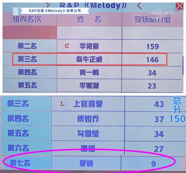 秦牛正威在票选中以146的高票位居同组第三;而同台竞技的另一组选手中,表现良好,唱功颇佳的夏研,却仅仅获得9票支持。
