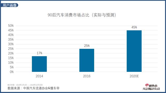 2019年,品牌“年轻化”成了汽车行业最为热门且颇有争议性的议题。汽车品牌在设计、配置、价格等方面充分迎合年轻人口味,以至于连超豪华品牌劳斯莱斯、宾利,都在年轻化方面大做文章。在中国汽车流通协会amp;amp;懂车帝发布的《2019中国汽车消费者洞察报告》显示,90后在汽车市场中的消费占比不断提升,预计2020年,90后在中国汽车市场中的消费占比将达到45%以上。