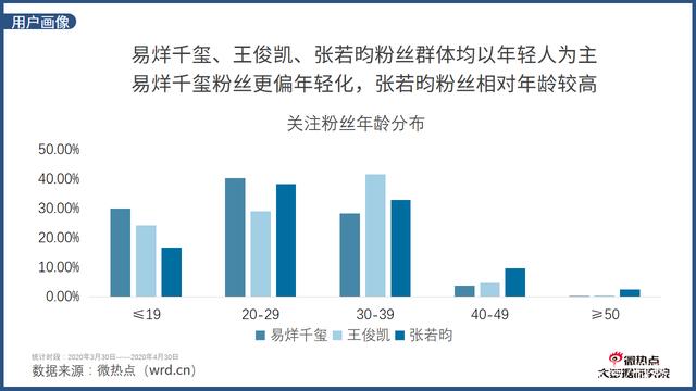 易烊千玺、王俊凯、张若昀的粉丝均集中在20——39岁,属于购置汽车的活跃人群,且易烊千玺的粉丝更相对集中于20——29岁人群和≤19岁人群,偶像影响的品牌偏好,也会影响到这些人群日后的消费活动。