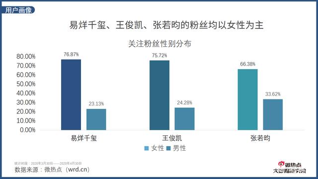 在代言人的性别关注度方面,易烊千玺、王俊凯、张若昀的女性粉丝群体均超过男性粉丝,而易烊千玺和王俊凯的女性粉丝占比近八成。这些女性粉丝群体不仅是购买力的缩影,更是家庭购车的重要决策人。