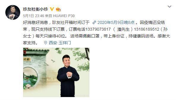 五月一号珍友社发布了开箱通知,算是熬到了拨云见日的时候,但这条消息仅仅只有十人回复,而且都是让老师注意安全的暖心提醒。估计作为数量有限的粉丝,也很难在当下买票入场,关键带着口罩看相声,你说笑起来多难受啊。