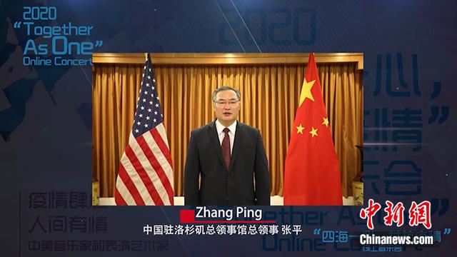 中国驻洛杉矶总领事张平在视频致辞中说,“四海一心 共抗疫情”音乐会融合东西方文化艺术,用音乐架起连接两国人民心灵的桥梁,传递爱和友谊。病毒无情人有情,这场音乐会让处在抗疫艰难时刻的中美两国人民感受到温暖,鼓舞了人们战胜疫情的勇气和信心,相信只要各国人民团结一致,就一定能早日战胜疫情。