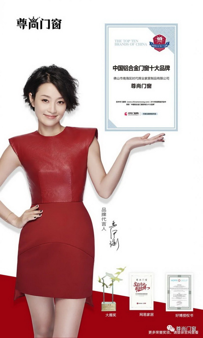 马伊琍是一位充满正能量的人,她即不是流量小花也不是网红,默默努力的她每次带来的作品都是收视率的保证。过去的《奋斗》、《我的前半生》,她把各种女主的内涵充分演绎出来。白玉兰奖、华鼎奖等重分量的奖项都被马伊琍收揽其中,但她却继续低调钻研演技,演绎出更多精彩的角色,这从一而终的敬业、专业的态度与尊尚门窗从2004年成立至今,16年来一直坚持只做铝合金门窗、阳光房的理念相一致。马伊琍在影视圈“一姐”地位恰如尊尚门窗位列“中国铝合金门窗十大品牌”。