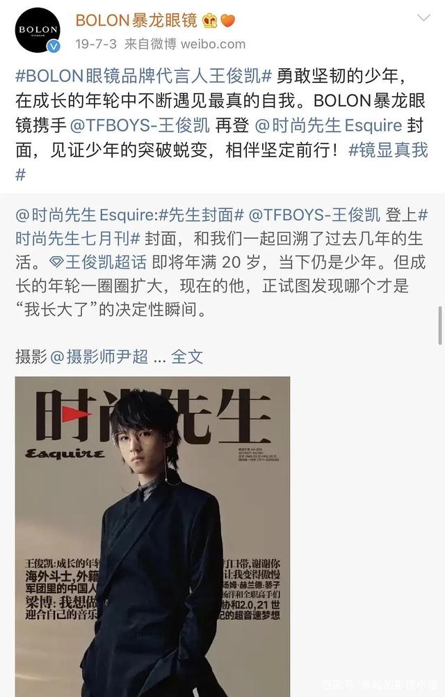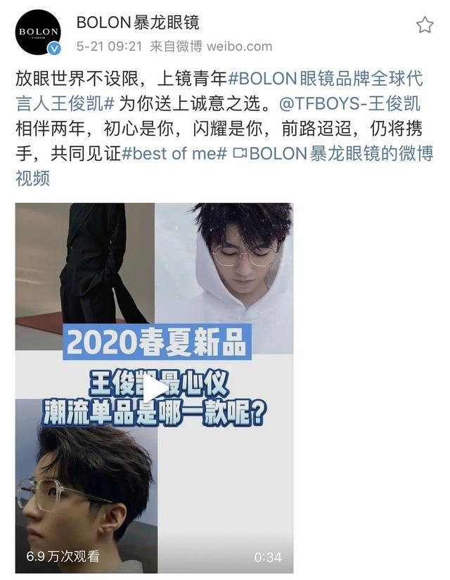 而且,王俊凯也在今年和暴龙眼镜再续前缘的同时,升级成为了暴龙眼镜的全球代言人,真的是要恭喜王俊凯了。