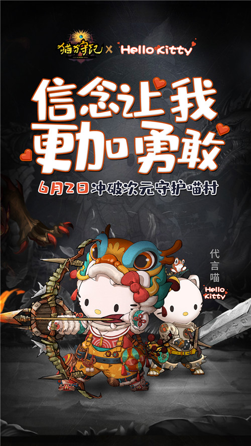 一直以来,HelloKitty活泼热情可爱的形象深入人心,这让她与《猫狩纪》轻松自由的狩猎特色有着极高契合度。此次代言《猫狩纪》手游的HelloKitty,在喵猎人的热情召唤下,将化身游戏中的“猫村守护者”,与喵猎人组成小队在前线与龙族勇敢搏斗,将战火阻挡在猫村之外!