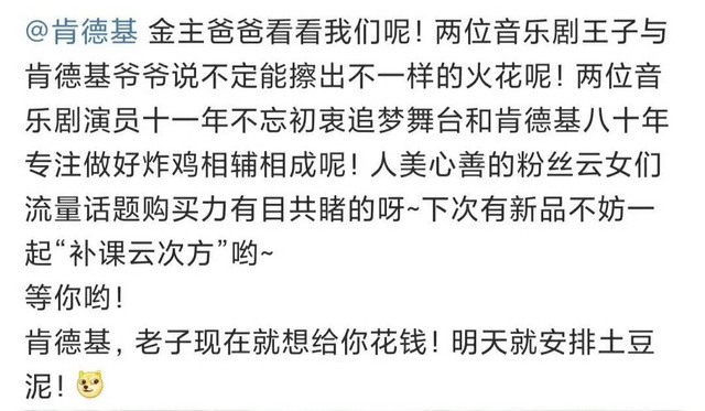“明天我弟官宣新代言!下次聚会我请大家吃KFC!”