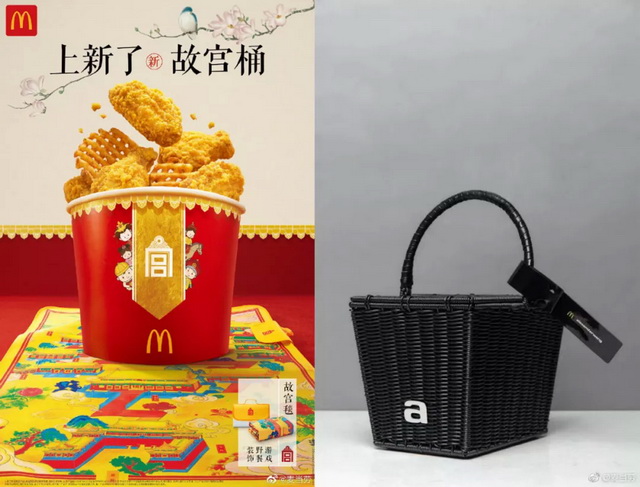 对于代言人的节制性曝光,虽然减弱了麦当劳本身的明星光环,却也为麦当劳强化自身IP留足了空间。从故宫文创、动漫人物全职高手等IP跨界合作,到与alexander wang联名上线“菜篮子”潮包,麦当劳自身的品牌IP保持了相对独立性。