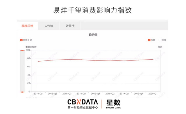 以麦当劳的新晋代言人易烊千玺为例,作为时隔3年才慎重选定的代言人,他已然是00后男星中极具影响力和商业价值的代表人物。根据CBNData星数近期发布的2020一季度明星消费影响力榜单,易烊千玺排名第6,在00后男星排名中第1。此外,从2018年至今,易烊千玺的消费影响力一直比较稳定于上位圈。
