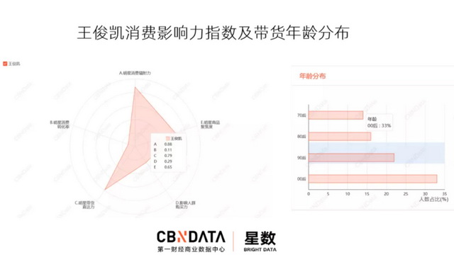 根据2020一季度明星消费影响力人气榜单,王俊凯居于95后男星第3名,同时CBNData星数罗盘的数据显示,受王俊凯影响的消费群体中90后、00后占比分别为22%与33%。