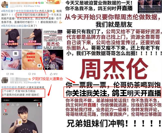 ”你关注我关注,鸽王明天开直播“、”全体夕阳打投组火速集合,鸽王明天开直播“、” 3 小时 100 万,这不是周杰伦的速度,冲呀!“……