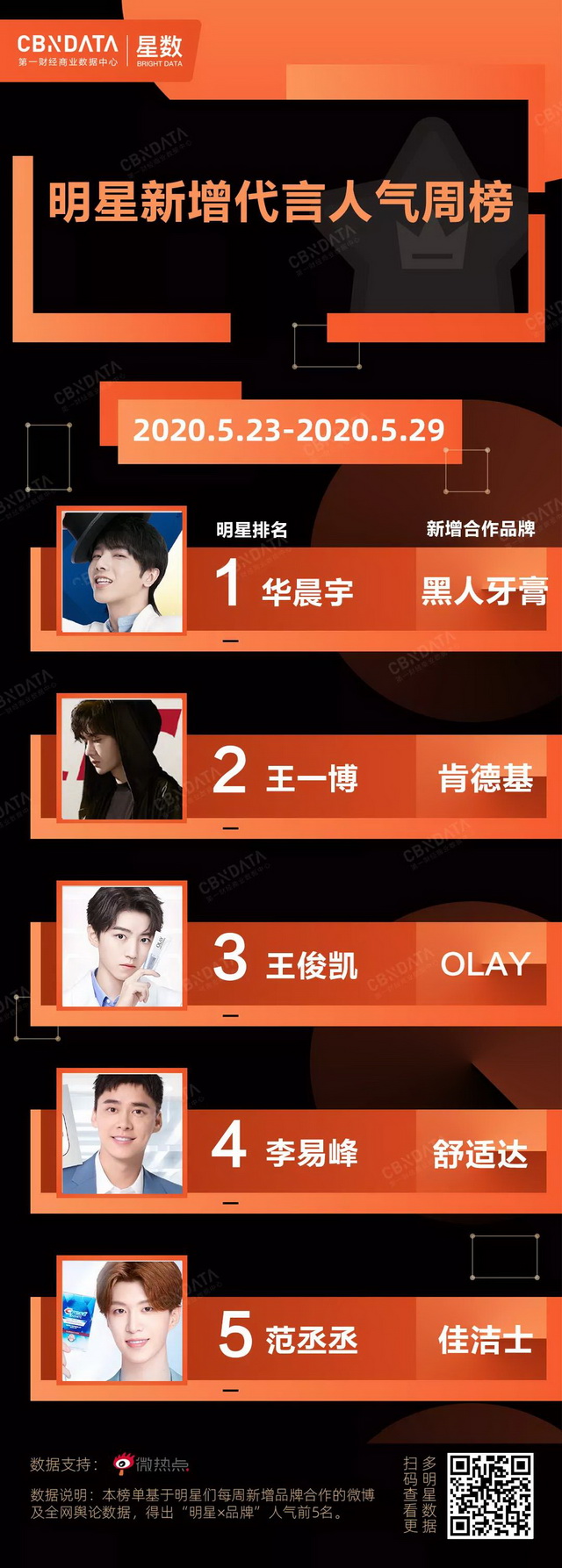 CBNData星数全新发布“明星新增代言人气周榜”及“明星代言周报”,聚焦美妆个护、食品饮料、家电3C、服饰鞋包、日化家清五大品类,用消费大数据的角度分析明星们的真实带货力。