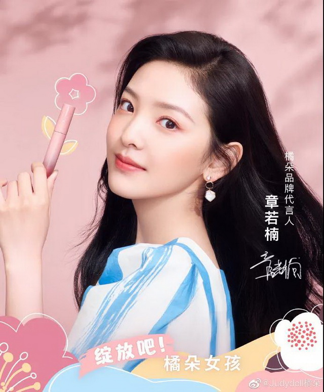 5月25日,橘朵官宣章若楠为品牌代言人。