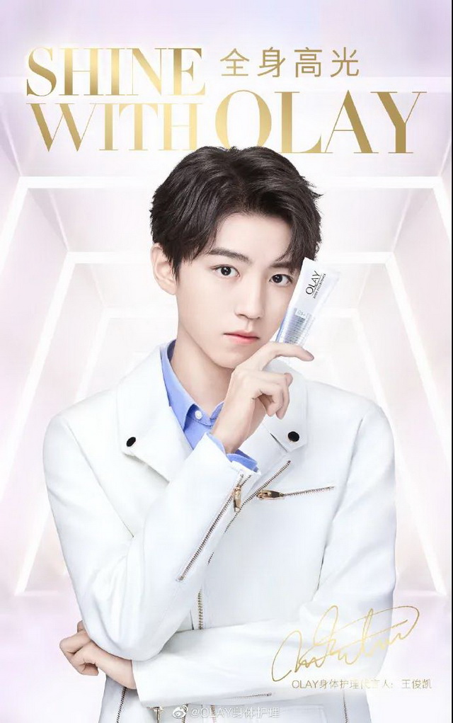 5月26日,OLAY官宣王俊凯为身体护理代言人。