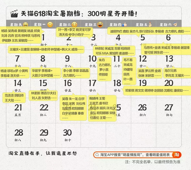 5月27日,天猫正式公布了618首批明星直播带货名单,300多位明星集体上淘宝直播,掀起史上最大规模的明星开播潮。