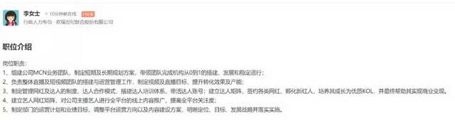 部分拥有艺人资源的影视公司,例如慈文传媒、华谊兄弟、欢瑞世纪、万达电影、奥飞娱乐等,甚至开始“自建”MCN。例如,欢瑞世纪5月初在某招聘网站发布招聘MCN部门总监的信息,岗位职责包括组建公司MCN业务团队,负责直播等运营业务。
