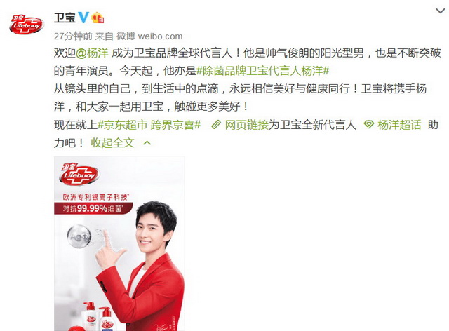 正式官宣为卫宝品牌全球代言人!他是帅气俊朗的阳光型男,也是不断突破的青年演员,从镜头里的自己,到生活中的点滴,永远相信美好与健康同行!