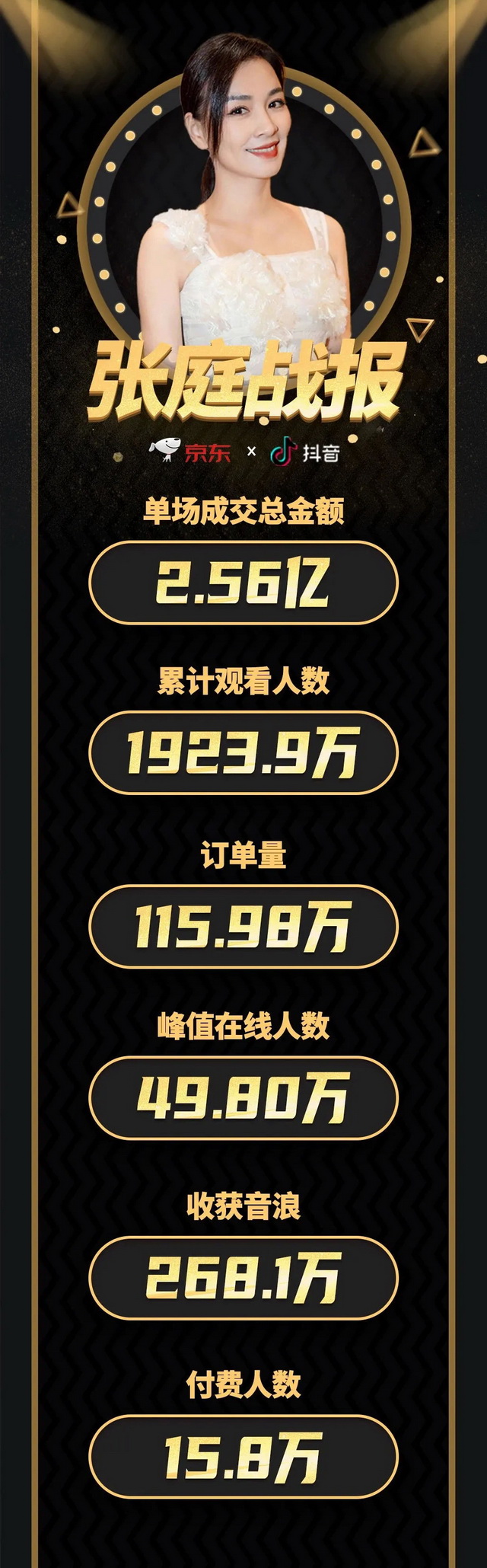 张庭直播首秀,5小时卖出2.56亿