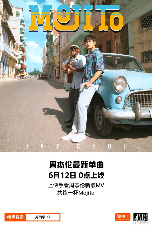 周杰伦发布新歌Mojito,快手透露他将在7月直播