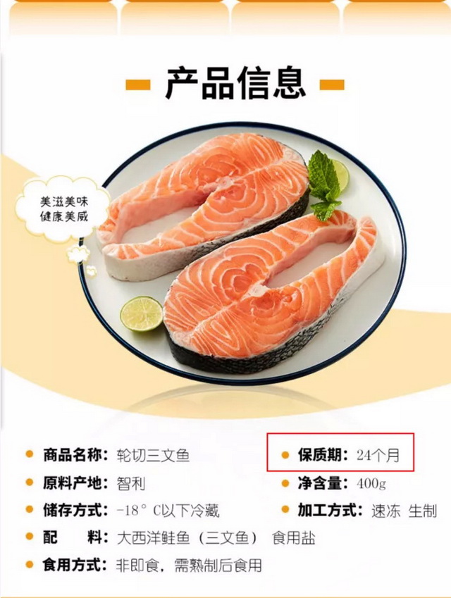 实际上,保质期较长的冷冻水产食品早已进入了我们的生活。盒马APP内“美威欧式原味三文鱼排”保质期达到2年(24个月),“TRF泰国活冻白虾”保质期也有2年。