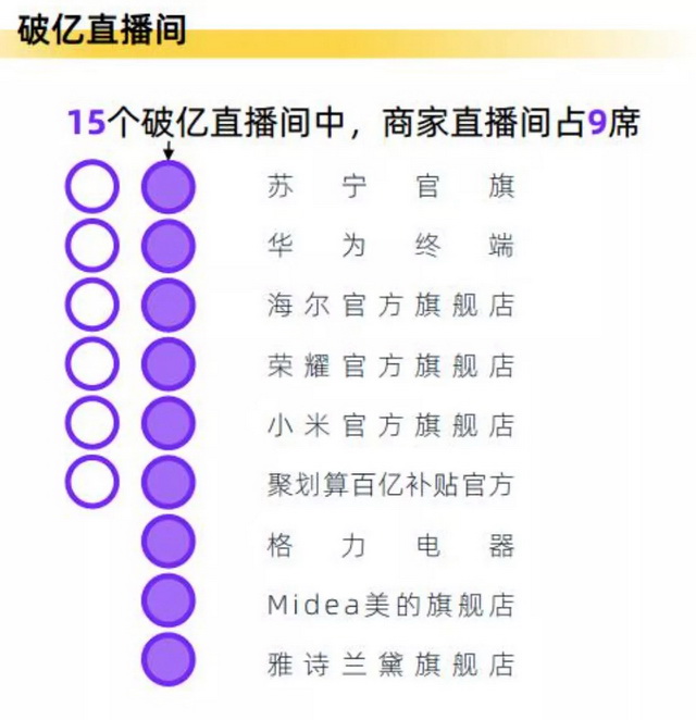 玄德此前接受「电商在线」采访时表示,淘宝直播70%的成交额来自店铺自播。此外,在618期间,淘宝直播共诞生了15个破亿直播间,其中商家直播间占9席。