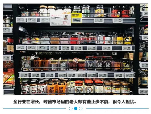 这还仅仅是线上的战况,在线下,大大小小的辣酱品牌都在争夺超市那有限的货架。