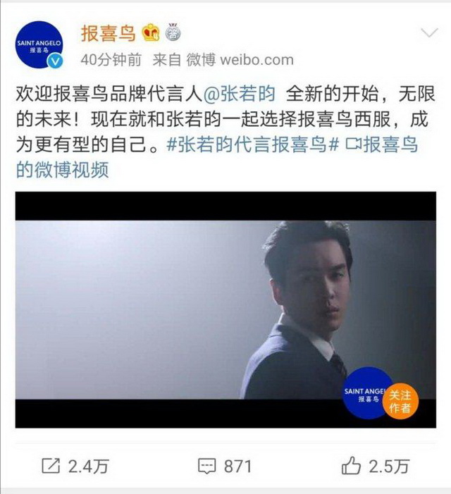 根据微博数据显示,张若昀目前微博粉丝数量为2532万人。