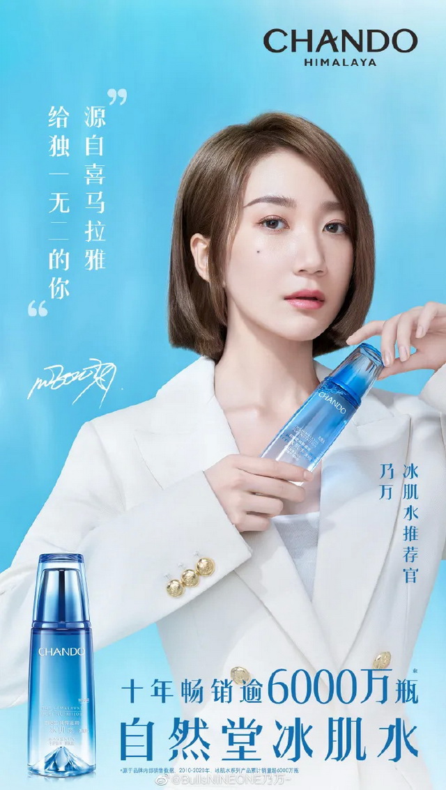 6月29日,自然堂官宣乃万为冰肌水推荐官。