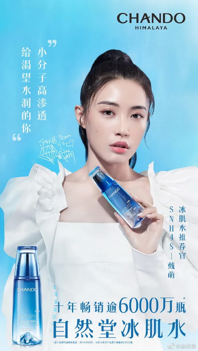 6月30日,自然堂官宣戴萌为冰肌水推荐官。