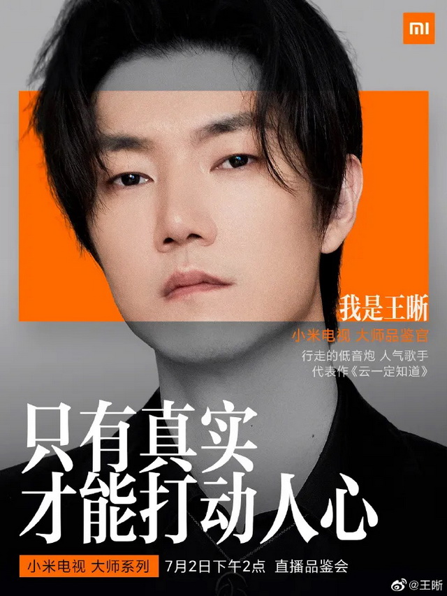 6月30日,小米电视官宣王晰为大师系列品鉴官。