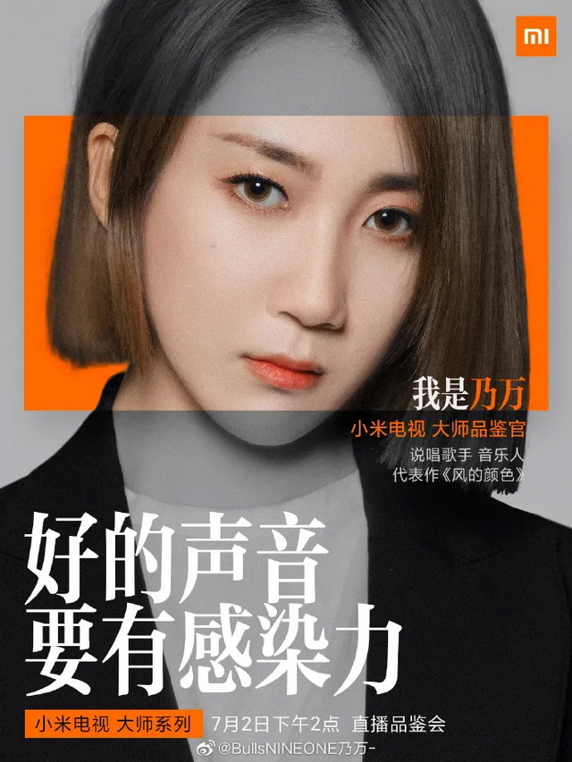 6月30日,小米电视官宣乃万为大师系列品鉴官。