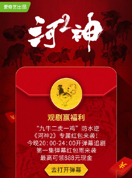 从弹幕红包的互动福利来看,爱奇艺深刻洞察到当下年轻人喜爱的福利形式,用以往在直播中常见的“红包雨”形式吸引用户观剧,只要打开弹幕就能开启红包雨,鼓励用户在观剧的同时打开弹幕发表看法,有效地提升了网友的追剧热情。