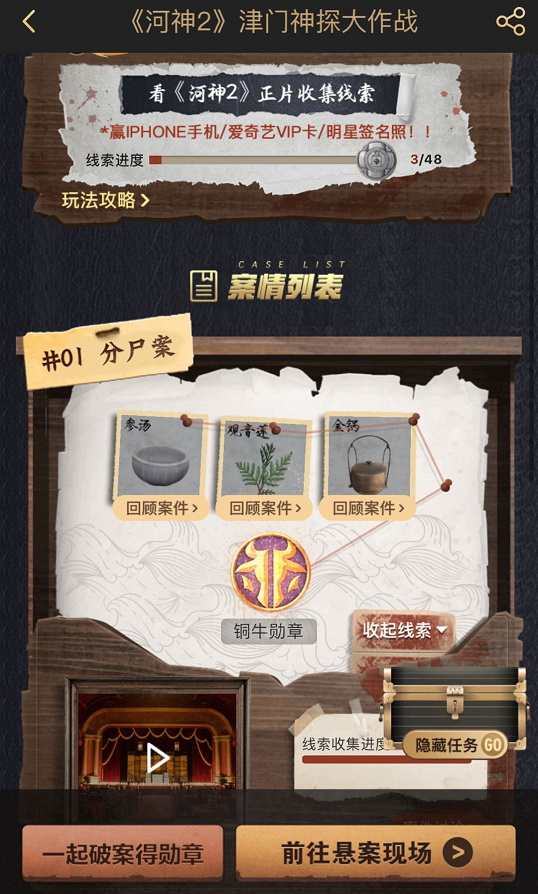 更为重要的是,爱奇艺从“用户成就感”出发,开发出一套线上探案的成就系统。用户在观剧过程中,可以激活案件、收集线索、获得勋章、预判凶手,还可以在“案情讨论区”跟其他玩家一起头脑风暴、探讨案情,通过打游戏“通关”的设定有效地促使用户持续看剧并且互动,营造出了跟主角同步探案、每看完一个案件就通一关的成就感,某种程度上将观众从单纯的观赏者变为了作品的参与者,有效地增强了互动向内容的回流。