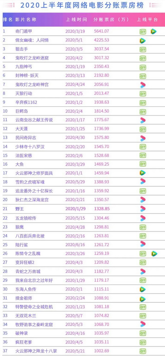 中国市场不同的是,中国影院和大片厂之间从来没有爆发过这么尖锐的矛盾,流媒体与电影院亦没有。且如爱奇艺,另辟蹊径从中低体量电影市场入局,打造出完全TO C的电影付费生态——网络电影生态,成为疫情期间线上内容的重要补给。在上半年中国网络电影市场里,全网共上线391部,37部分账破千万,破千万的概率接近10%,也就是说这些中小成本影片里,半年时间有接近40部拿到了相当于院线票房3000万以上的好成绩,四部以上电影拿到超过3千万票房分账,相当于院线票房破了亿。虽然这些电影的制作体量不大,卡司不能跟院线头部媲美,但在特殊时期能让电影产生可观的现金流,保住一部分人的饭碗,还是值得肯定的。