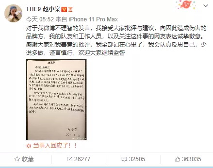 杨铭坦诚,公众对艺人的舆论监管越发严格,也对艺人运营提出了新的挑战。近日,旗下艺人赵小棠因为在自己小号不当发言引发的一场不小的舆论风波。