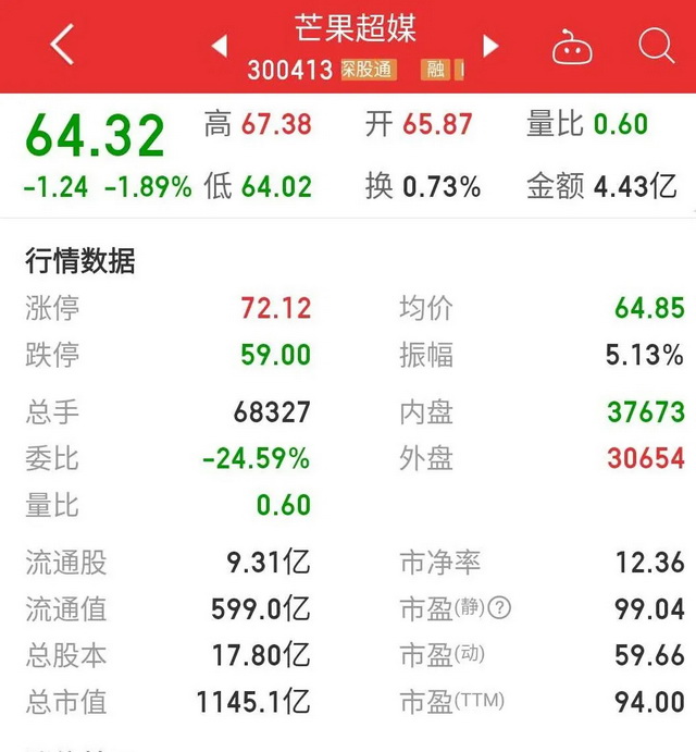 除了成为近两个月来大众内容消费与茶余饭后的谈资,该节目还实打实搅动了资本市场。作为《乘风破浪的姐姐》制作方和播出平台,芒果TV背后的芒果超媒成为首个受益者。节目开播当日,芒果超媒股价大涨,盘中触及涨停,截至当天收盘,股价报56.39元,涨幅达6.82%,总市值为1003.95亿元。