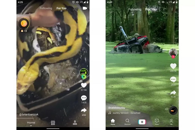(左图:快手国际版Zynn,右图:TikTok。两者界面几乎没有差别)